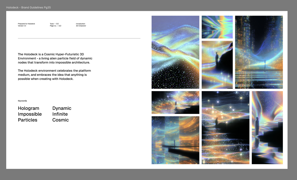 - —Character System: Controllable 3D Holo character navigates the space — WASD movement, jump, sprint. Designed for spatial exploration of curated content.